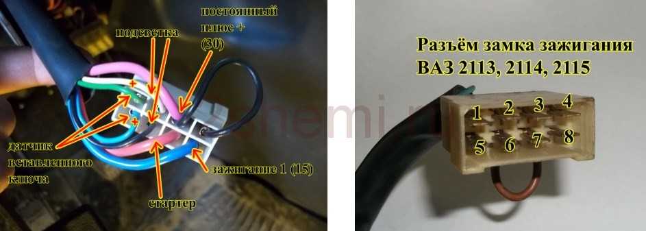 Распиновка замка зажигания ВАЗ-2113, 2114, 2115: